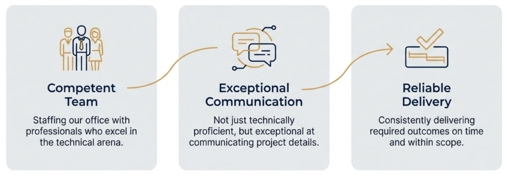 We pride ourselves in staffing our office with competent team, which does not only excel in the technical arena, but who also are exceptional at communicating and delivering as required.